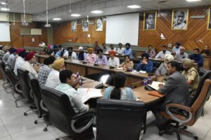 ਜ਼ਿਲ੍ਹਾ ਪ੍ਰਬੰਧਕੀ ਕੰਪਲੈਕਸ ਵਿਖੇ ਸਿੰਘ ਸਭਾਵਾਂ, ਸੇਵਾ ਸੁਸਾਇਟੀਆਂ ਅਤੇ ਗੁਰਦੁਆਰਾ ਪ੍ਰਬੰਧਕ ਕਮੇਟੀਆਂ ਦੇ ਨੁਮਾਇੰਦਿਆਂ ਨਾਲ ਮੀਟਿੰਗ ਦੌਰਾਨ ਡਿਪਟੀ ਕਮਿਸ਼ਨਰ ਨੇ ਪੁਲਿਸ ਵਿਭਾਗ ਦੇ ਅਧਿਕਾਰੀਆਂ ਨੂੰ ਸੁਰੱਖਿਆ ਦੇ ਪੁਖ਼ਤਾ ਪ੍ਰਬੰਧ ਅਤੇ ਸੁਚਾਰੂ ਟ੍ਰੈਫਿਕ ਵਿਵਸਥਾ ਯਕੀਨੀ ਬਣਾਉਣ ਦੀਆਂ ਹਦਾਇਤਾਂ ਕੀਤੀਆਂ।