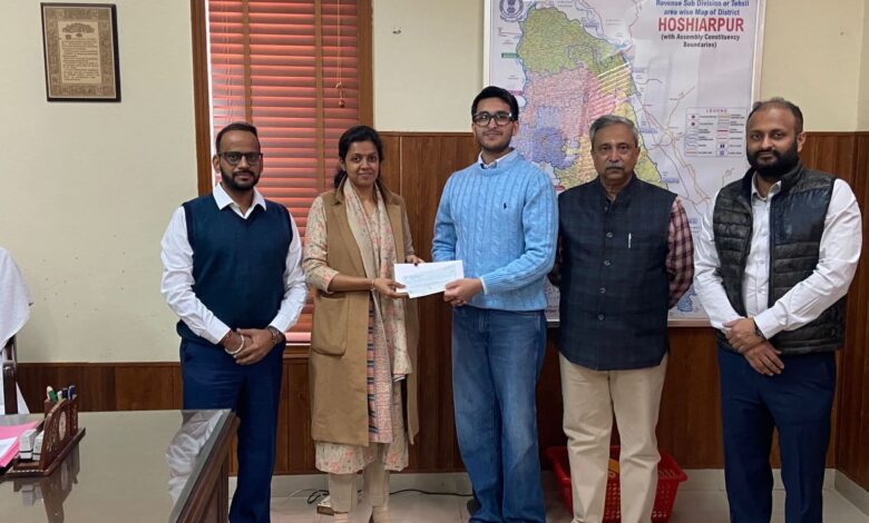 ਹੁਸ਼ਿਆਰਪੁਰ, 13 ਨਵੰਬਰ ( ਬਿਊਰੋ ).ਜ਼ਿਲ੍ਹਾ ਰੈੱਡ ਕਰਾਸ ਸੁਸਾਇਟੀ, ਹੁਸ਼ਿਆਰਪੁਰ ਵੱਲੋਂ ਵਿਸ਼ੇਸ਼ ਬੱਚਿਆਂ ਲਈ ਚਲਾਏ ਜਾ ਰਹੇ ਵਿਲੱਖਣ ਪ੍ਰੋਜੈਕਟ “ਵਿੰਗਜ਼” ਨੂੰ ਇਕ ਪ੍ਰੇਰਨਾਦਾਇਕ ਯੋਗਦਾਨ ਮਿਲਿਆ। ਮੁਹਾਲੀ ਨਿਵਾਸੀ ਉਦਿਤ ਗੁਪਤਾ, ਜੋ ਕਿ ਅਜੇਸ਼ ਗੁਪਤਾ (ਐਸੋਸੀਏਟ ਵਾਈਸ ਪ੍ਰੈਜ਼ੀਡੈਂਟ, ਕੁਆਂਟਮ ਪੇਪਰ ਮਿੱਲਜ਼, ਸੈਲਾ ਖੁਰਦ) ਦੇ ਪੁੱਤਰ ਹਨ, ਨੇ ਪ੍ਰੋਜੈਕਟ ਲਈ 1.25 ਲੱਖ ਰੁਪਏ ਦਾ ਚੈੱਕ ਭੇਟ ਕੀਤਾ।