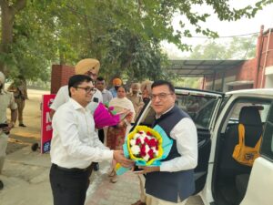 ਮਾਲੇਰਕੋਟਲਾ 4 ਨਵੰਬਰ ( ਬਿਊਰੋ, ਦਲਜਿੰਦਰ ਸਿੰਘ ਚੀਮਾਂ ) ਡਵੀਜ਼ਨਲ ਕਮਿਸ਼ਨਰ ਵਿਨੈ ਬੁਬਲਾਨੀ ਨੇ ਮਾਲੇਰਕੋਟਲਾ ਦੇ ਐਸਡੀਐਮ ਅਤੇ ਤਹਿਸੀਲਦਾਰ ਦਫ਼ਤਰਾਂ ਦਾ ਅਚਨਚੇਤ ਨਿਰੀਖਣ ਕਰਨ ਪੁਜੇ। ਇਸ ਮੌਕੇ ਦਫ਼ਤਰ ਡਿਪਟੀ ਕਮਿਸ਼ਨਰ ਮਾਲੇਰਕੋਟਲਾ ਵਿਖੇ ਪੁਹੰਚਣ ਤੇ ਪੰਜਾਬ ਪੁਲਿਸ ਦੇ ਜਵਾਨਾਂ ਵਲੋਂ ਗਰਾਡ ਆਫ਼ ਆਨਰ ਦਿੱਤਾ ਗਿਆ । ਇਸ ਮੌਕੇ ਡਿਪਟੀ ਕਮਿਸ਼ਨਰ ਵਿਰਾਜ ਐਸ.ਤਿੜਕੇ,ਵਧੀਕ ਡਿਪਟੀ ਕਮਿਸ਼ਨਰ ਸੁਖਪ੍ਰੀਤ ਸਿੰਘ ਸਿੱਧੂ,ਸਹਾਇਕ ਕਮਿਸ਼ਨਰ ਰਾਕੇਸ ਕੁਮਾਰ ਗਰਗ,ਜ਼ਿਲ੍ਹਾ ਮਾਲ ਅਫ਼ਸਰ ਮਨਦੀਪ ਕੌਰ ਤੋਂ ਇਲਾਵਾ ਵੱਖ ਵੱਖ ਸ਼ਾਖਾਵਾਂ ਦੇ ਮੁੱਖੀ ਮੌਜੂਦ ਸਨ।