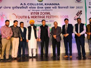 ਖੰਨਾ 11 ਨਵੰਬਰ ( ਬਿਊਰੋ ) ਕੈਬਨਿਟ ਮੰਤਰੀ ਅਮਨ ਅਰੋੜਾ ਅਤੇ ਤਰੁਣਪ੍ਰੀਤ ਸਿੰਘ ਸੋਂਦ ਨੇ ਏ.ਐਸ. ਕਾਲਜ, ਖੰਨਾ ਵਿਖੇ ਆਯੋਜਿਤ 66ਵੇਂ ਪੰਜਾਬ ਯੂਨੀਵਰਸਿਟੀ ਇੰਟਰ-ਜੋਨਲ ਯੂਥ ਐਂਡ ਹੈਰੀਟੇਜ ਫੈਸਟੀਵਲ ਦੇ ਸਮਾਪਤੀ ਸਮਾਰੋਹ ਵਿੱਚ ਸ਼ਿਰਕਤ ਕੀਤੀ।