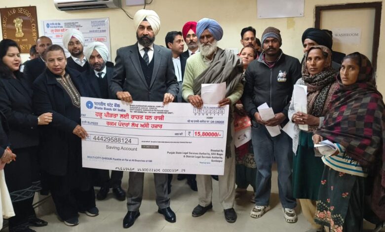 ਇਸ ਮੌਕੇ ਮਾਨਯੋਗ ਜਿਲ੍ਹਾ ਅਤੇ ਸੈਸ਼ਨ ਜੱਜ-ਸਹਿਤ-ਜਿਲ੍ਹਾ ਕਾਨੂੰਨੀ ਸੇਵਾਵਾਂ ਅਥਾਰਟੀ, ਗੁਰਦਾਸਪੁਰ ਪਰਿਵਾਰਾਂ ਨੂੰ ਮੁਆਵਜਾ ਰਾਸ਼ੀ ਉਹਨਾਂ ਦੇ ਬੈਂਕ ਖਾਤਿਆ ਵਿੱਚ ਆਰ.ਟੀ.ਜੀ.ਐੱਸ ਰਾਹੀਂ ਪਾਈ ਗਈ।