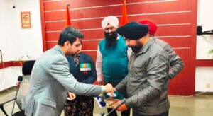 ਜ਼ਿਲ੍ਹਾ ਸੈਨਿਕ ਬੋਰਡ ਤਰਫ਼ੋਂ ਰਿਟ. ਲੈਫਟੀਨੈਂਟ ਕਰਨਲ ਡਾ. ਸੁਖਮੀਤ ਮਿਨਹਾਂਸ ਨੇ ਡਿਪਟੀ ਕਮਿਸ਼ਨਰ ਮੋਗਾ ਦੇ ਸੀਨੇ 'ਤੇ ਲਗਾਇਆ ਝੰਡਾ