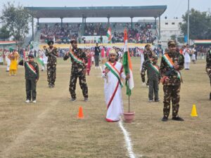 ਬਰਨਾਲਾ, 26 ਜਨਵਰੀ ( ਸੂਤਰ ) ਭਾਰਤ ਦਾ 77ਵਾਂ ਗਣਤੰਤਰ ਦਿਵਸ ਸਮਾਗਮ ਬਾਬਾ ਕਾਲਾ ਮਹਿਰ ਬਹੁਮੰਤਵੀ ਖੇਡ ਸਟੇਡੀਅਮ ਵਿਖੇ ਬੜੇ ਉਤਸ਼ਾਹ ਨਾਲ ਮਨਾਇਆ ਗਿਆ। ਇਸ ਮੌਕੇ ਪੰਜਾਬ ਵਿਧਾਨ ਸਭਾ ਦੇ ਡਿਪਟੀ ਸਪੀਕਰ ਸ੍ਰੀ ਜੈ ਕ੍ਰਿਸ਼ਨ ਸਿੰਘ ਰੌੜੀ ਨੇ ਮੁੱਖ ਮਹਿਮਾਨ ਵਜੋਂ ਸ਼ਿਰਕਤ ਕਰਦਿਆਂ ਕੌਮੀ ਝੰਡਾ ਲਹਿਰਾਉਣ ਦੀ ਰਸਮ ਅਦਾ ਕੀਤੀ।