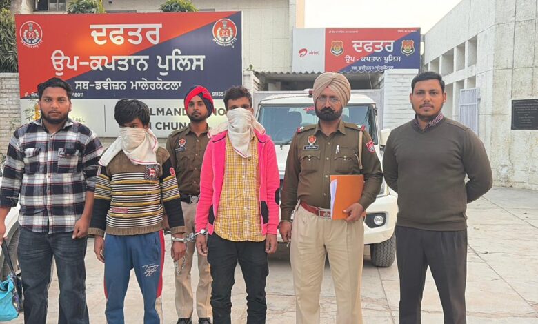 ਮਾਲੇਰਕੋਟਲਾ ਪੁਲਿਸ ਵੱਲੋਂ 8 ਮੋਬਾਇਲ ਤੇ 3 ਲੈਪਟਾਪ ਚੋਰੀ ਮਾਮਲੇ ਵਿੱਚ ਦੋ ਦੋਸ਼ੀ ਗ੍ਰਿਫਤਾਰ