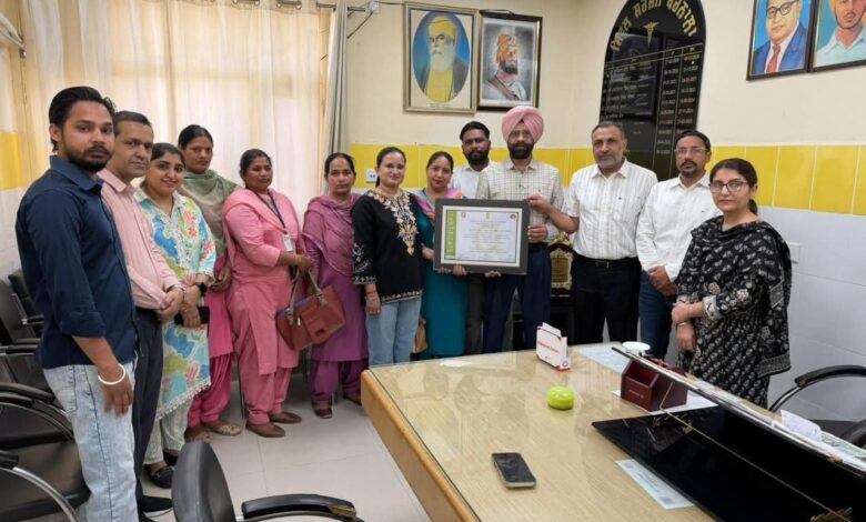 ਆਮ ਆਦਮੀ ਕਲੀਨਿਕ/ਸਿਹਤ ਕੇਂਦਰ ਜਲੂਰ ਨੂੰ ਮਿਲਿਆ ਰਾਸ਼ਟਰੀ ਗੁਣਵੱਤਾ ਸਰਟੀਫਿਕੇਟ