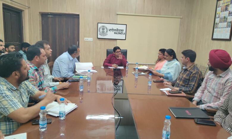ਪੰਜਾਬ ਸਰਕਾਰ ਵੱਲੋਂ ਸੂਬੇ ਵਿੱਚ ਉਦਯੋਗ ਅਤੇ ਵਪਾਰ ਨੂੰ ਉਤਸ਼ਾਹਿਤ ਕਰਨ ਅਤੇ ਕਾਰੋਬਾਰ ਲਈ ਸਾਜਗਾਰ ਮਾਹੌਲ ਤਿਆਰ ਕਰਨ ਲਈ ਲਗਾਤਾਰ ਯਤਨ ਕੀਤੇ ਜਾ ਰਹੇ ਹਨ। ਇਸੇ ਸੰਦਰਭ ਵਿੱਚ ਡਿਪਟੀ ਕਮਿਸ਼ਨਰ ਮਾਲੇਰਕੋਟਲਾ ਵਿਰਾਜ ਐਸ. ਤਿੜਕੇ ਦੀ ਅਗਵਾਈ ਹੇਠ ਡਿਪਟੀ ਕਮਿਸ਼ਨਰ ਦਫ਼ਤਰ ਦੇ ਮੀਟਿੰਗ ਹਾਲ ਵਿਖੇ ਵੱਖ-ਵੱਖ ਵਿਭਾਗਾਂ ਦੇ ਅਧਿਕਾਰੀਆਂ ਅਤੇ ਪੰਜਾਬ ਸਟੇਟ ਟਰੇਡਰਜ਼ ਕਮਿਸ਼ਨ ਦੇ ਪ੍ਰਤੀਨਿਧੀਆਂ ਨਾਲ ਇੱਕ ਮਹੱਤਵਪੂਰਨ ਮੀਟਿੰਗ ਆਯੋਜਿਤ ਕੀਤੀ ਗਈ। ਮੀਟਿੰਗ ਵਿੱਚ ਚੇਅਰਮੈਨ ਜ਼ਿਲ੍ਹਾ ਟਰੇਡਰਜ਼ ਕਮਿਸ਼ਨ ਆਜ਼ਮ ਦਾਰਾ, ਚੇਅਰਮੈਨ ਵਿਧਾਨ ਸਭਾ ਹਲਕਾ ਮਾਲੇਰਕੋਟਲਾ ਇਮਿਤਿਆਜ਼ ਅਲੀ, ਚੇਅਰਮੈਨ ਵਿਧਾਨ ਸਭਾ ਹਲਕਾ ਅਮਰਗੜ੍ਹ ਅਸ਼ਵਨੀ ਕੁਮਾਰ, ਐਸ.ਡੀ.ਐਮ ਮਾਲੇਰਕੋਟਲਾ ਕਨੂ ਗਰਗ, ਐਸ.ਡੀ.ਐਮ ਅਮਰਗੜ੍ਹ ਹਰਬੰਸ ਸਿੰਘ ਸਮੇਤ ਹੋਰ ਵਿਭਾਗਾਂ ਦੇ ਅਧਿਕਾਰੀ ਮੌਜੂਦ ਸਨ।