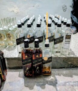 ਅਧਿਕਾਰੀਆਂ ਨੇ ਦੱਸਿਆ ਕਿ ਲਹਿਲ ਕਾਲੋਨੀ ਵਿੱਚ ਮਕਾਨ ਨੰਬਰ 2060/5/ਬੀ ’ਤੇ ਕੀਤੀ ਗਈ ਛਾਪੇਮਾਰੀ ਦੌਰਾਨ ਅਰਜੁਨ ਕੁਮਾਰ ਅਤੇ ਪੁਨੀਤ ਕੁਮਾਰ ਨੂੰ ਰੰਗੇ ਹੱਥੀਂ ਕਾਬੂ ਕੀਤਾ ਗਿਆ। ਦੋਸ਼ੀ ਪ੍ਰੀਮੀਅਮ ਸਕਾਚ ਬ੍ਰਾਂਡਾਂ ਦੀਆਂ ਖਾਲੀ ਬੋਤਲਾਂ ਵਿੱਚ ਘੱਟ ਦਰਜੇ ਦੀ ਵਿਸਕੀ ਭਰ ਕੇ ਨਕਲੀ ਕੈਪ ਸੀਲਾਂ ਨਾਲ ਵੇਚਣ ਦੀ ਤਿਆਰੀ ਕਰ ਰਹੇ ਸਨ। ਮੌਕੇ ਤੋਂ 34 ਭਰੀਆਂ ਬੋਤਲਾਂ, ਵੱਡੀ ਗਿਣਤੀ ਵਿੱਚ ਖਾਲੀ ਬੋਤਲਾਂ ਅਤੇ ਨਕਲੀ ਪੈਕਿੰਗ ਸਮੱਗਰੀ ਬਰਾਮਦ ਕੀਤੀ ਗਈ। ਇਸ ਸਬੰਧੀ ਥਾਣਾ ਸਿਵਲ ਲਾਈਨਜ਼ ਵਿੱਚ ਮਾਮਲਾ ਦਰਜ ਕੀਤਾ ਗਿਆ ਹੈ।